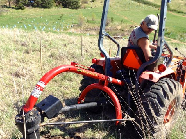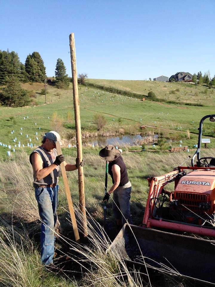 Here’s my artistic collaborator, preparing the hillside for the installation. Steve Streets, all-around handyman/contractor who knows how to make just about anything work and build just about anything, too. Once the holes were dug, it was my job to fill while he tamped down the dirt.