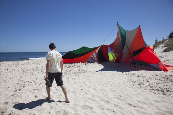 Too much feasting of Google images! I was about to shut down my computer when, out of the corner of my eye, I saw this: The Wind Playground. Clearly a joy to experience, the kinetic, interactive sculpture, drawing on the physicality of wind, is the work of artist Maria Anthea Marinelli. The aspiring young artist merged her lifelong passion and knowledge of sailing for her 2013 Sculpture by the Sea Cottesloe in Australia.