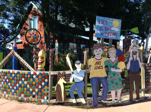 Seeking out Dick and Jane’s Spot is like a pilgrimage for me—honoring the notion of art for art’s sake. I marvel at the artists’ public commitment to share their work as well as artwork they have collected over the years. If you insert two quarters in an old postcard machine, you receive, neatly sandwiched between thin cardboard, a picture postcard of Dick and Jane’s Spot.